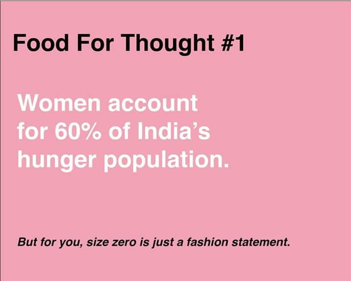 “Somewhere , Someone is sleeping with an empty stomach while you were busy in counting your calories. ,,